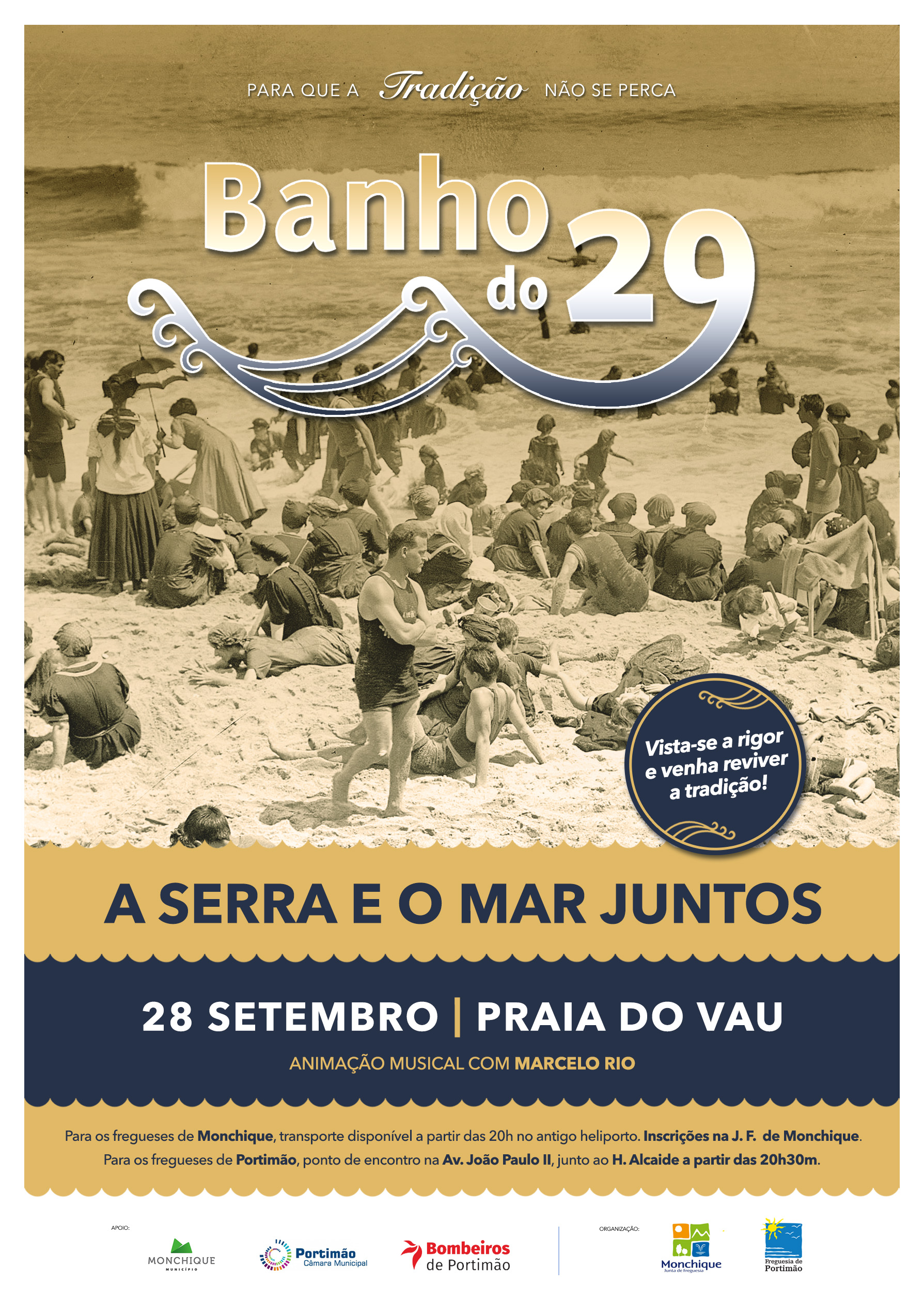 No domingo, dia 28 de setembro, a partir das 20h30 vai ter efeito o habitual Banho do 29 na praia do Vau.