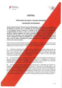 CAMPANHA DE VACINAÇÃO ANTIRRÁBICA – 2022