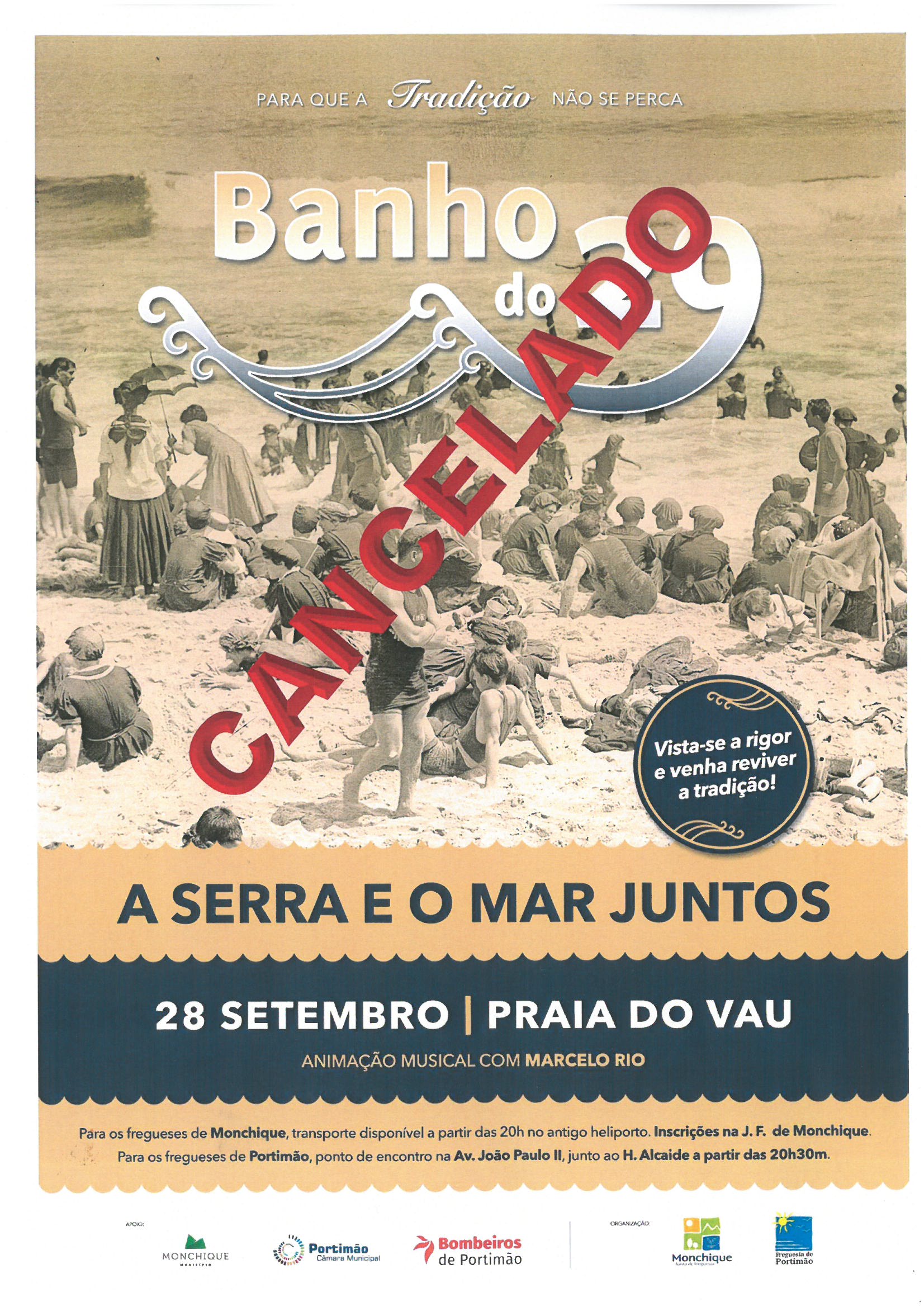 Devido às condições meteorológicas adversas previstas para domingo, dia 28 de setembro de 2025 , o Banho do 29 foi cancelado.